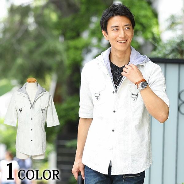 シャツパーカー パーカー フード メンズ シャツ トップス 5分袖ムラ染めフェイクレイヤードシャツパーカー 79 2 1990 Menz Style 通販 Yahoo ショッピング